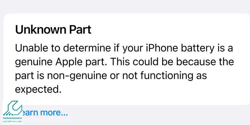 در مدلهای آیفون ۱۱ به بعد، بخش Parts & Service History بهصورت دقیق نوع قطعات تعویضشده را نمایش میدهد. اگر ال سی دی غیر اصل یا غیرقابل تأیید باشد، پیامهایی مانند: